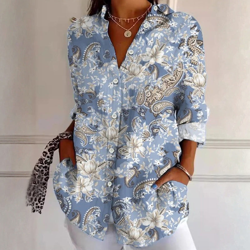 【Långärmad】 Vintage Blus Med Blommigt Tryck