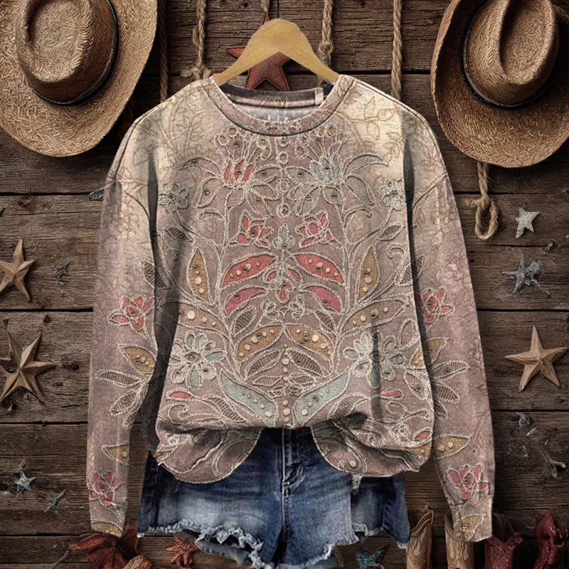 【Långärmad】 Vintage Blus Med Blommigt Tryck